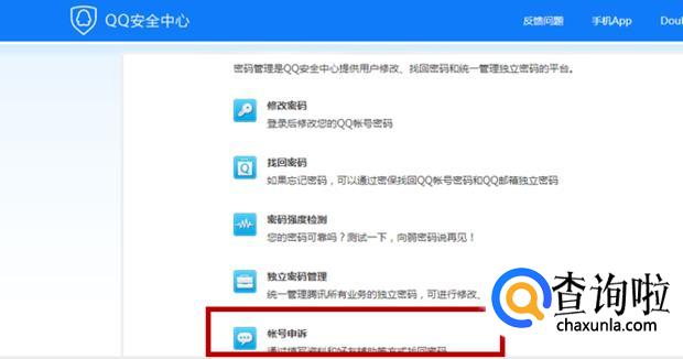 在密码管理界面选择“账号申述”,后面就跟着要求填写信息即可。