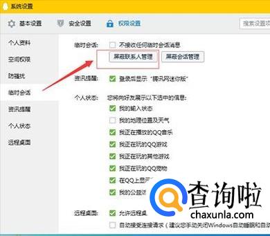 在临时对话界面上选择屏蔽联系人管理点击进去;