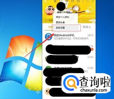 打开电脑,登录自己qq,进入到qq界面,单击图像右键,点击系统设置;