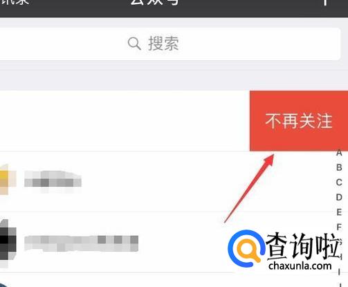 接着将页面往右侧滑动,这时候会出现不再关注按钮,然后选择不再关注,这时候就能取消对这个微信公众号的关注了。