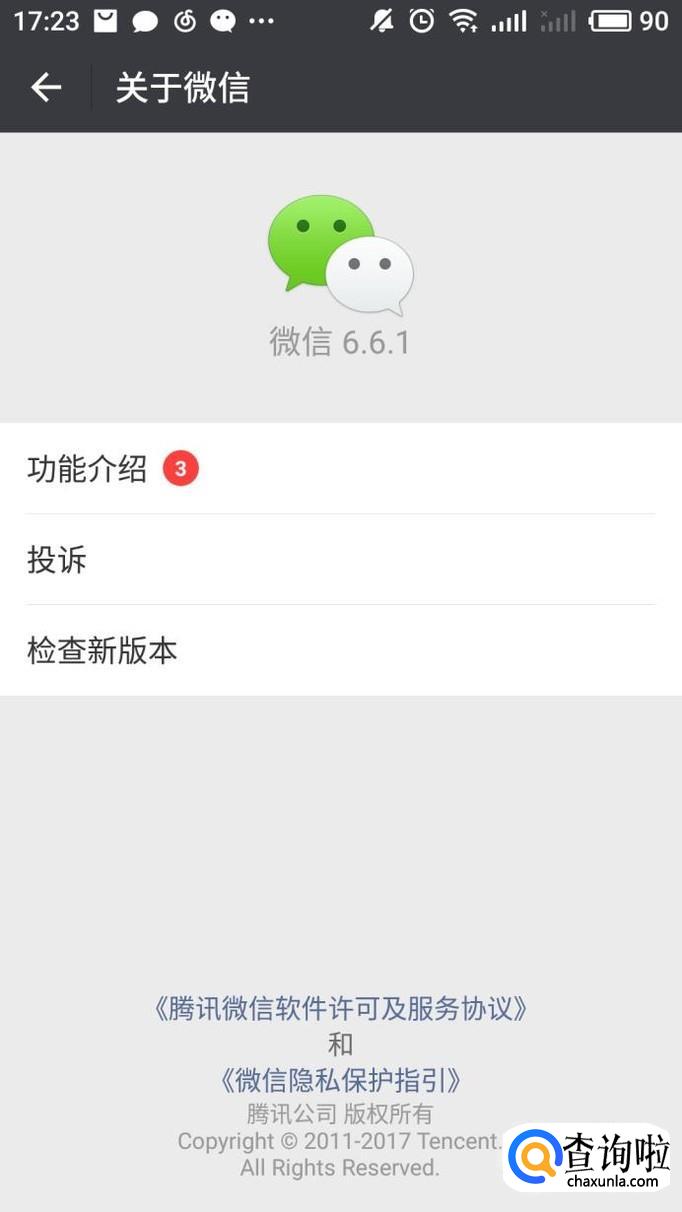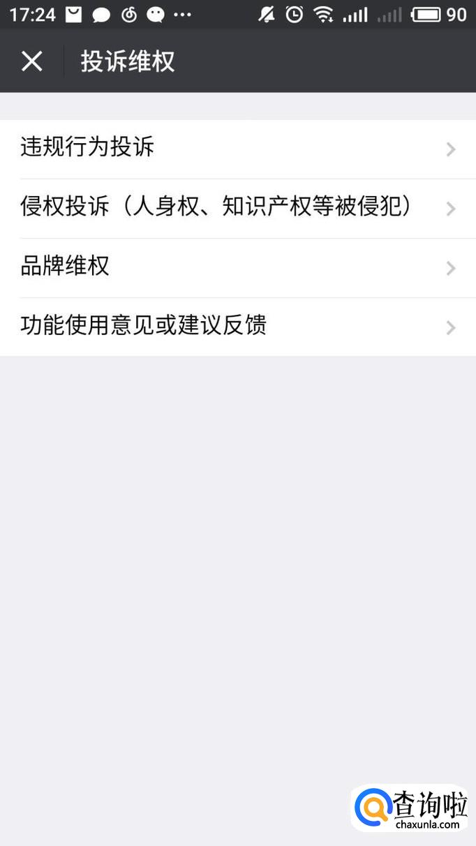进入关于微信界面后会看到投诉界面,点击进入投诉界面。