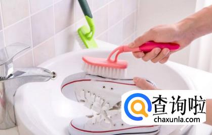 用牙膏刷洗后把鞋子用清水把泡沫清洗干净,然后把它沥干。