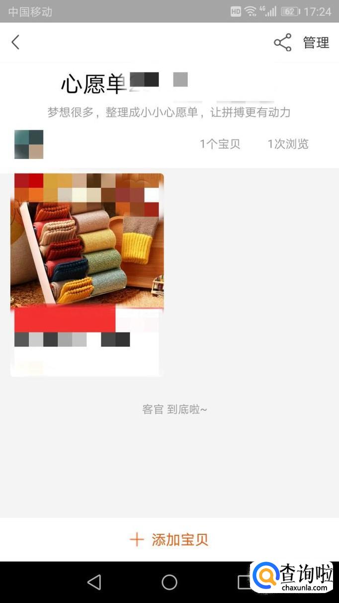 进入“收藏夹”后,可以看到刚刚收藏的物品,和上方的创建心愿单,点击“创建心愿单”进入。