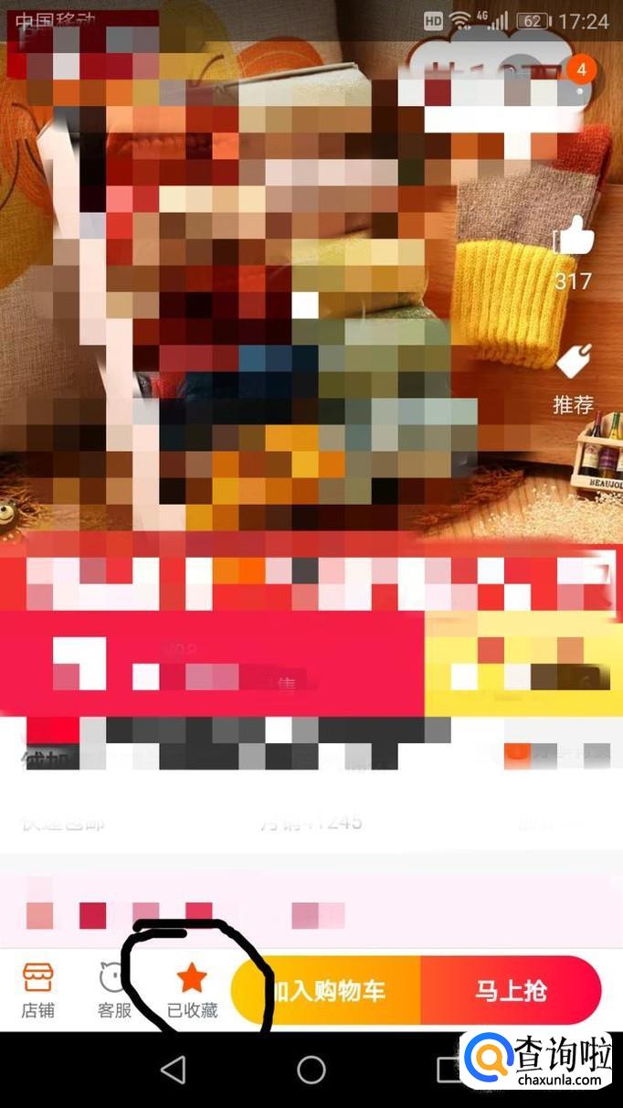 首先,我们打开手机淘宝,在淘宝里面找到想要加入心愿单的物品,如图,加入“收藏”或“加入购物车”。