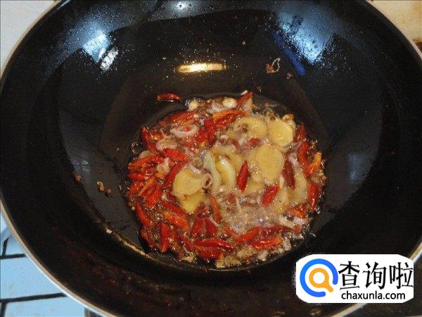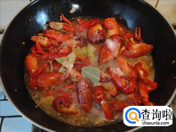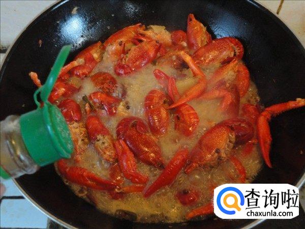 待小龙虾变色后加入少量水、火锅底料、白酒、白糖、适量盐。