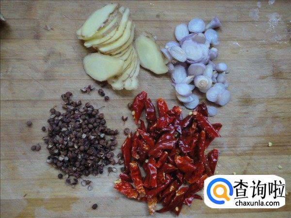 点火热锅,然后加入适量食用油,热锅冷油的同时加入葱姜蒜爆香,此时调成小火,避免糊锅,然后放入干辣椒、花椒、香叶、草果一起翻炒。