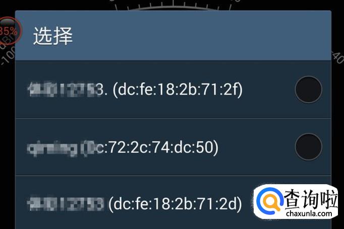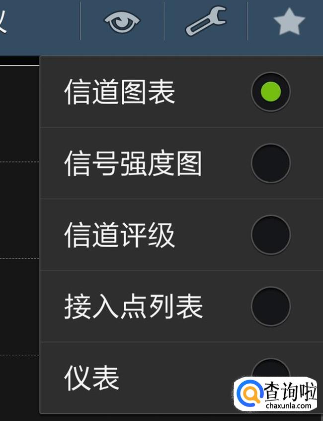 选择“仪表”,会显示一个仪表盘,然后点一下下面的“轻按这里选择”,会出现一个网络列表,从中点选一个,就会以仪表的形式显示这个网络的信号强度。