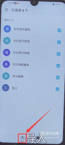 接下来我们【全选联系人】,然后点击【导入】。