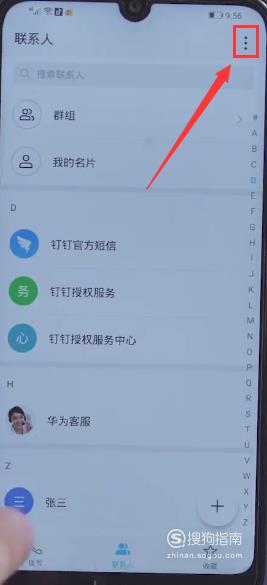 首先我们在旧手机打开【手机联系人】,点击右上角的【三个点】。