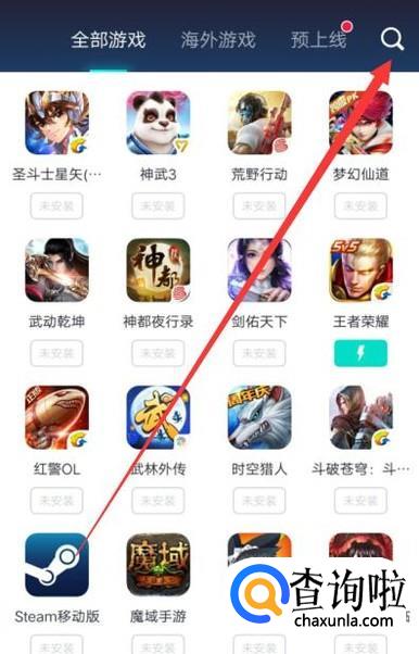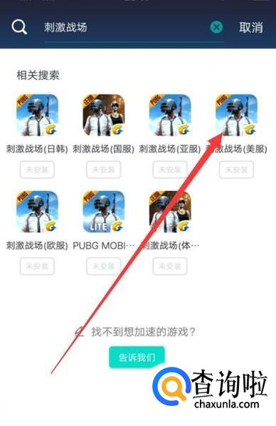 进入之后,在图示位置搜索刺激战场,如图所示。