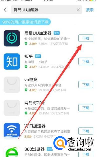 进入之后,搜索“网易UU加速器”,并将其下载,如图所示。