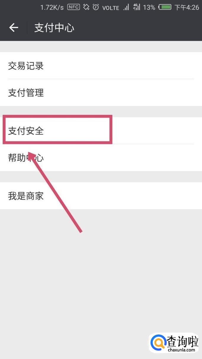 进入到“支付中心”界面,在界面上方找到“支付安全”,点击进入。