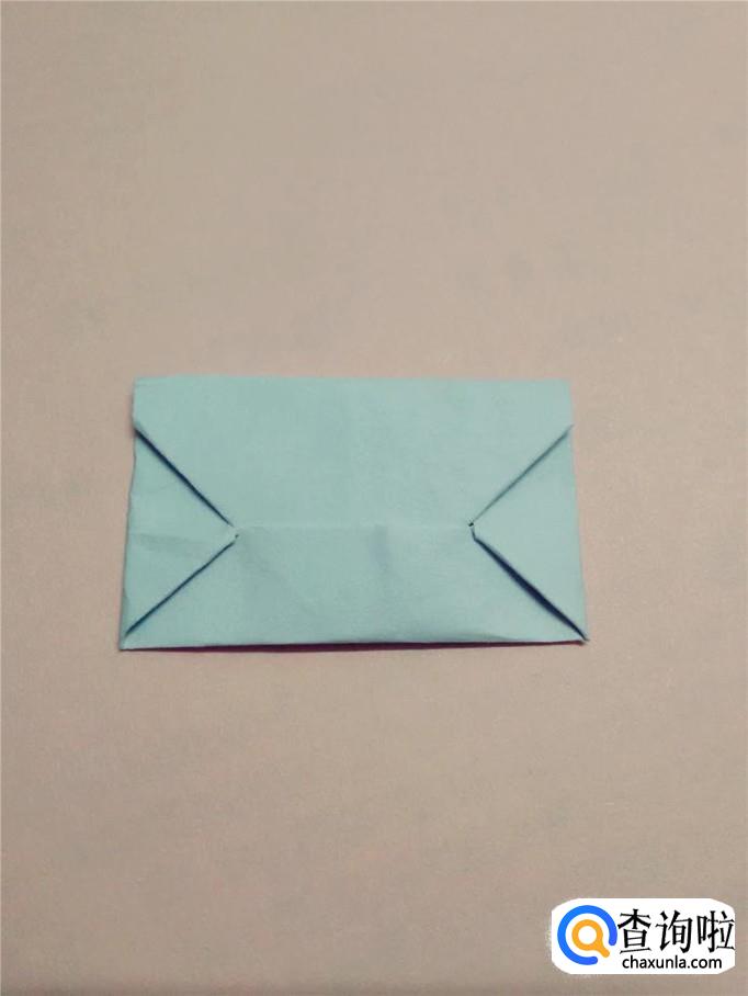 把左上角和右上角往纵向的中心线上折,按平。