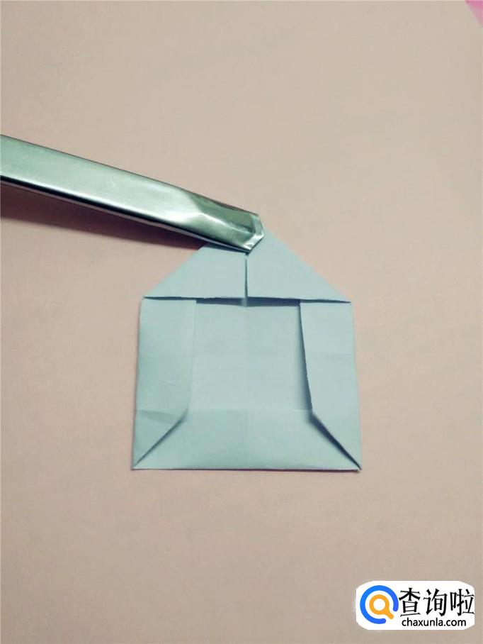 把上面的尖往下折,插进下面的缺口中,插严实,按平,一个信封就做好了,如果有信,可以先把信放进去,再封口。