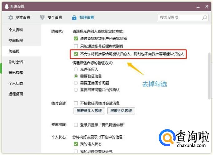 然后将推荐人的相关选项取消勾选就可以,再次返回到联系人处就看不到新朋友推荐了。