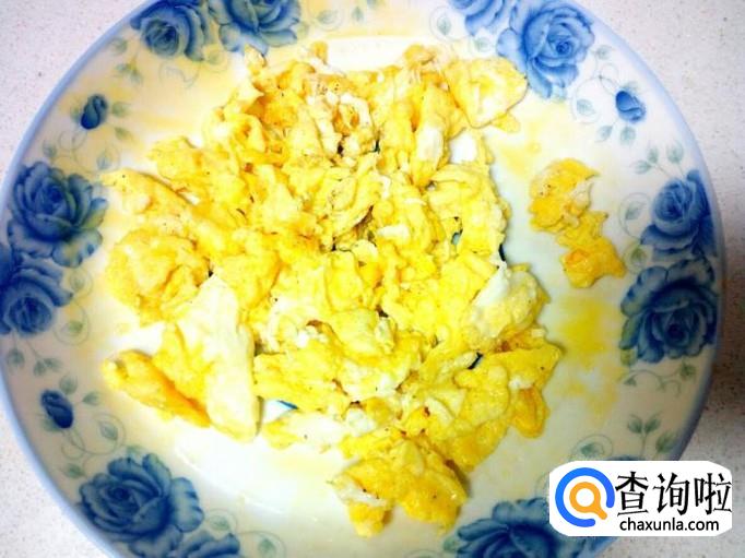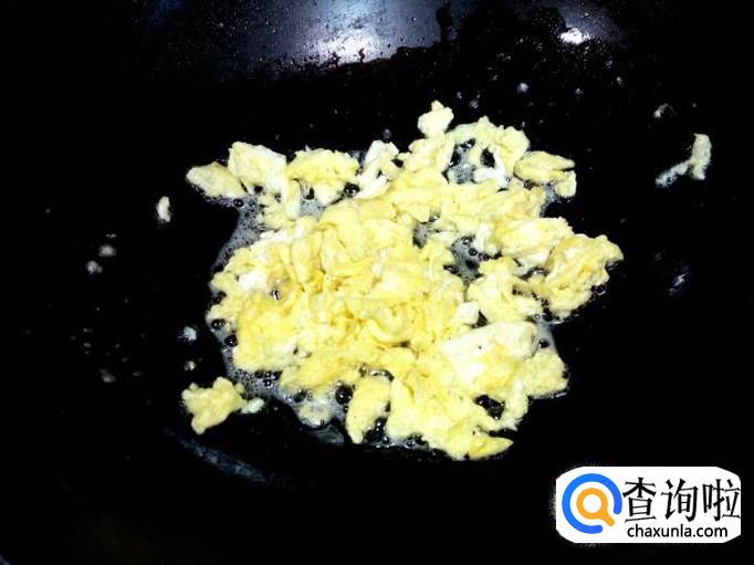 鸡蛋用锅炒出来,炒至八分熟,盛出备用。
