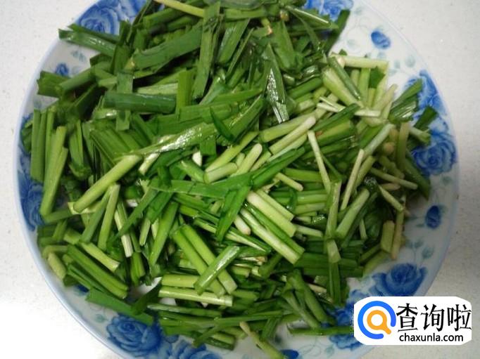 韭菜收拾清洗干净,控干水分,切成寸段。