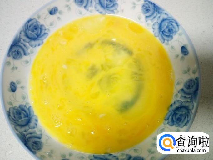 鸡蛋打入盘中,搅拌成鸡蛋液。切好葱,姜,备用。