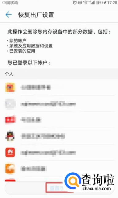 弹出的界面,我们点击重置手机就可以了。这样我们就恢复手机的出厂设置了。