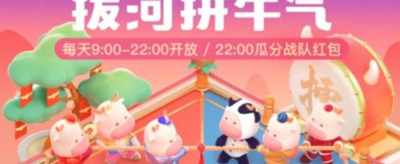 拼牛气玩法活动时间:2021年1月29-2021年2月10日,活动期间每天9:00-22:00开放,22:00瓜分战队红包。活动期间内,大家可以选择自己创建战队,或者是加入别人的战队,组建战队后,需要队员攒牛气,可以通过做任务攒牛气,还有就是拉人攒牛气。胜出的战队即可瓜分红包奖励。