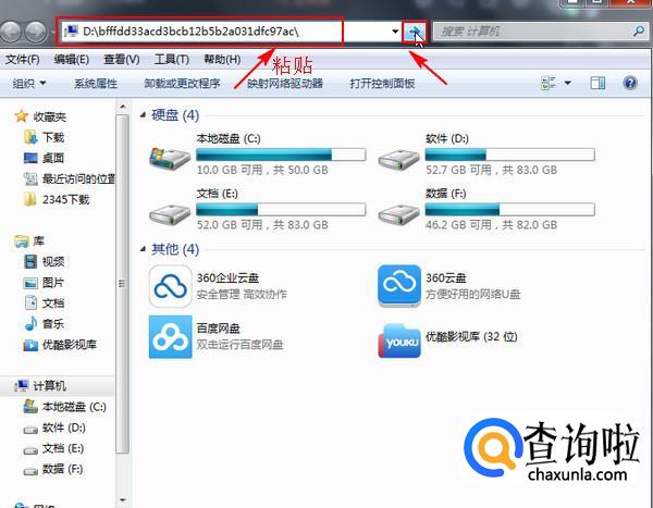 打开我的电脑,把刚才复制的位置粘贴到目录下,系统自动找到该文件的位置,也就是我们在腾讯视频中缓存的视频的位置。