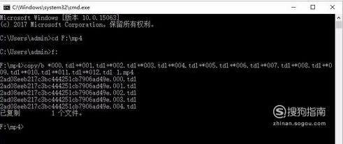 下面我们要输入转换视频的代码,输入命令copy/B空格3*.tdl空格Video001.mp4",按enter键。这里是因为小编的缓存的文件都是以3开头的,所以是3*.tdl ,如果是e开头的,就输入e*.tdl (以此类推)有些缓存文件转码后显示的是同一个视频文件,相同的可以选择覆盖,不一样的会自动转码成功。