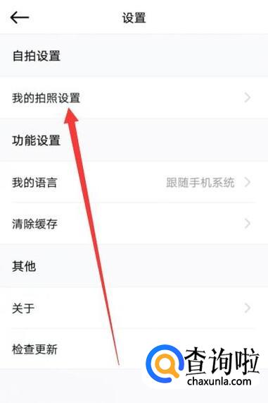 进入之后,点击“我的拍照设置”,进入下一页面,如图所示。