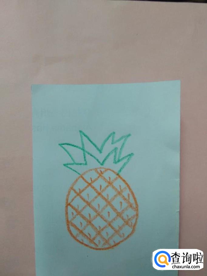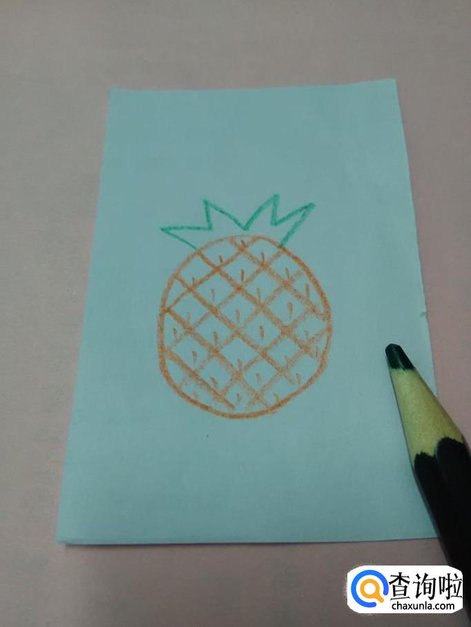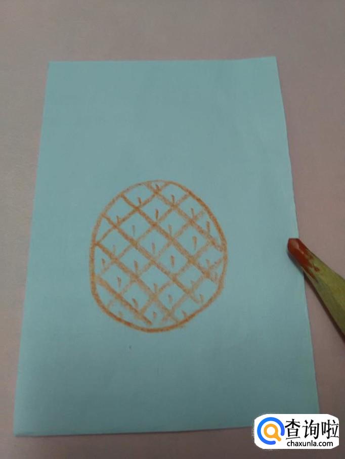 用桔色笔在每个菱形小块上面画一条短小的竖道,表示菠萝上的坑。
