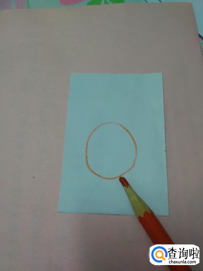 先用桔色的笔在纸上画一个椭圆形,这是菠萝的形状。