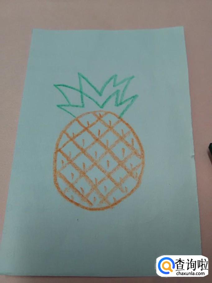 在叶子上面再画一排锯齿形状,表示第二层叶子,到这里,菠萝就画完了。