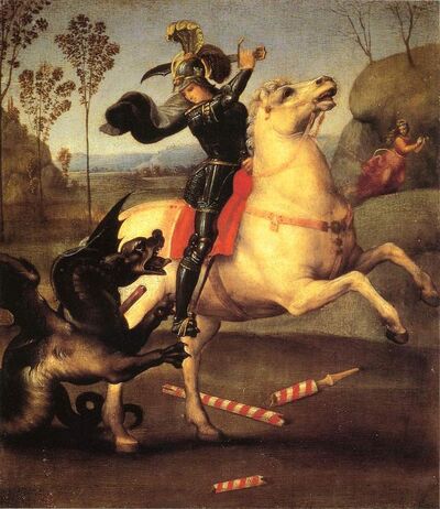 不过,圣乔治由于跟恶龙搏斗时耗费了所有的精力,筋疲力尽而亡,年仅43岁。这一年,是303年。