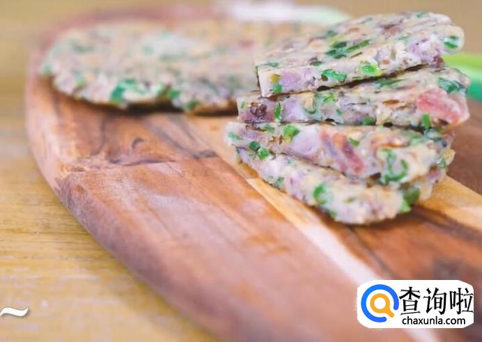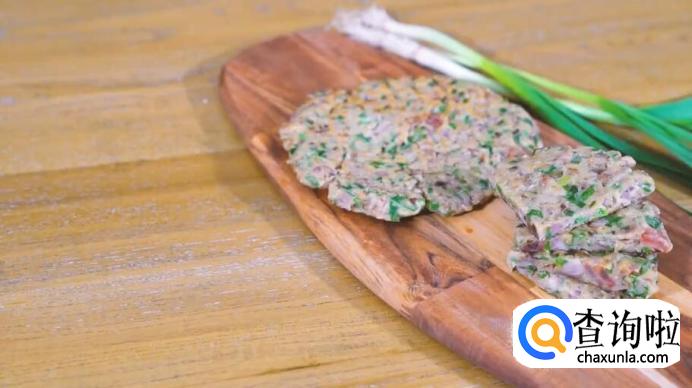 平底锅中倒入花生油,把混合物倒入锅中,压平。