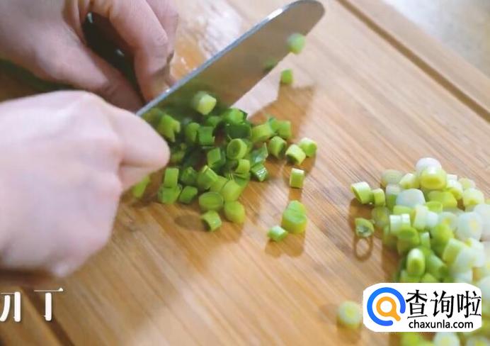 蒜苗去头切丁。