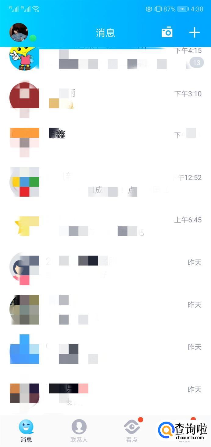 首先,打开QQ聊天主页,然后点击左上角的头像。