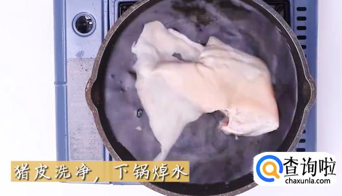 将猪皮洗净后,下锅焯水。