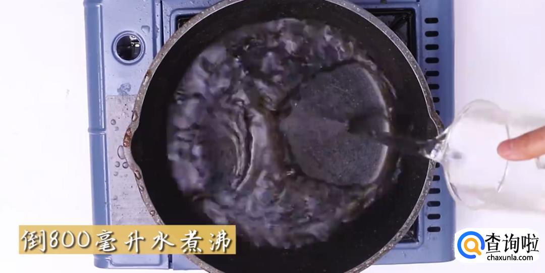 在干净的锅中倒入800毫升水煮沸。