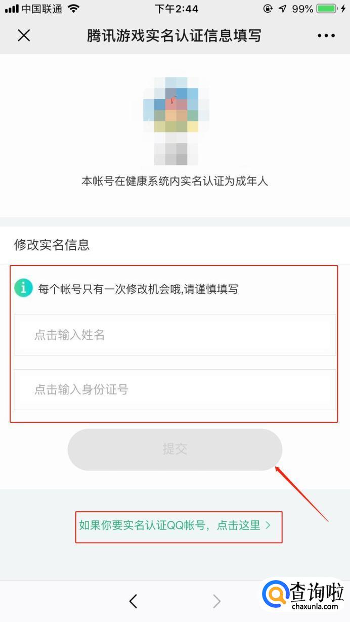 在界面中填写你的信息,完事后点击“提交”,如果要认证QQ的话,就点击下面的“如果你要实名认证QQ账号,点击这里”选项完成认证即可。