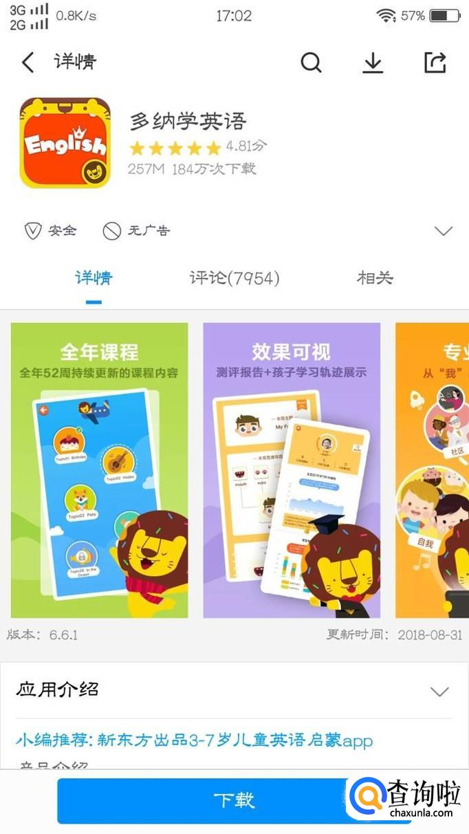 《多纳学英语》,这款软件适合对孩子的英语启蒙教育,里面有一些游戏,可以让孩子在快乐中学习,让学习与快乐两不误,里面还有些小福利哦