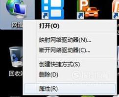 右键单击桌面的“网络”图标,在弹出的菜单里选择“属性”。