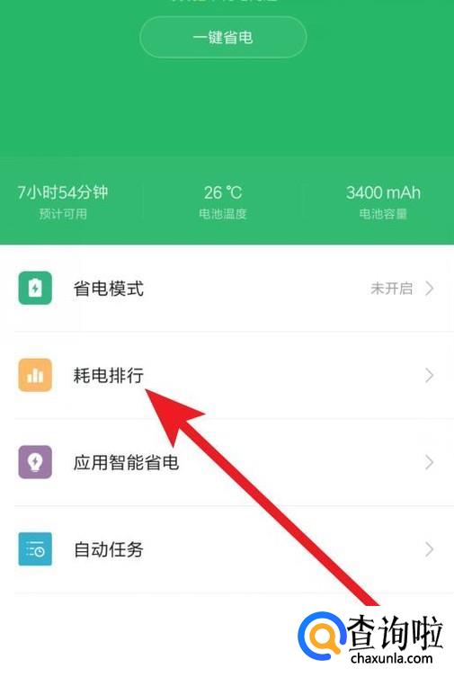 在这个页面中,可以看到电池电量的一些情况,打开耗电排行。