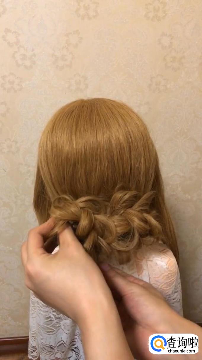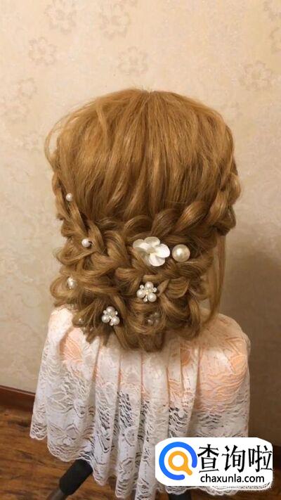 再将左前方的头发也同样编好后,固定在盘发的上面,形成交叉状。