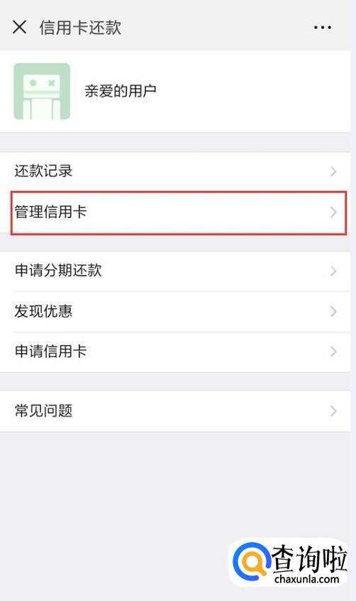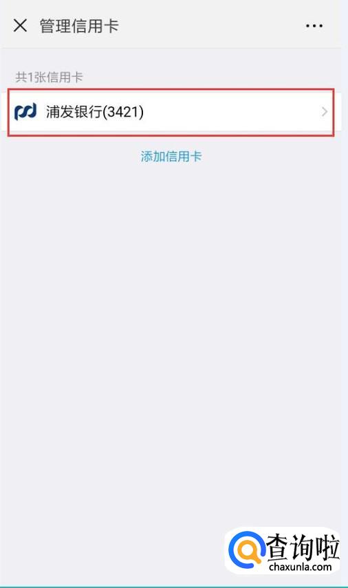 在“管理信用卡”界面选择想要设置还款日提醒的信用卡。