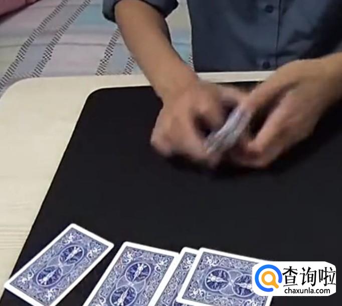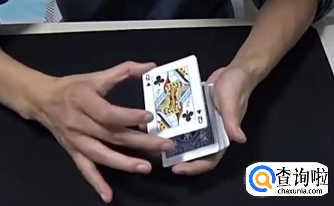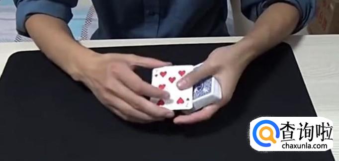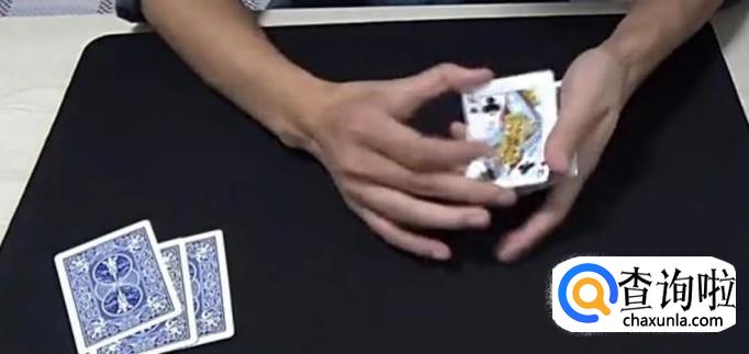 最后一张牌需要技巧了,需将抽出来的牌和A紧密靠拢,然后用大拇指和中指分别捏住两张牌的角,再迅速翻牌,即变成A了