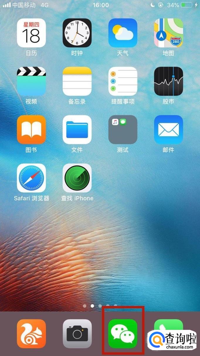 首先在我们的手机桌面上找到微信并点击它,如下图所示。