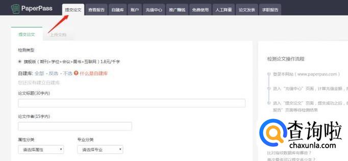 得到奖励后,回到提交论文,根据页面提示,提交论文相关内容,最后点击提交检测