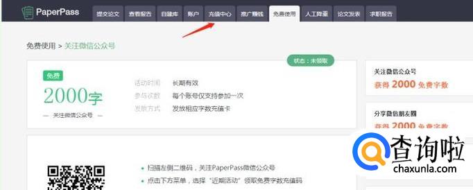 回到paperpass官网,点击充值中心,下拉到最底端,有充值码输入,输入充值码,得到相应奖励