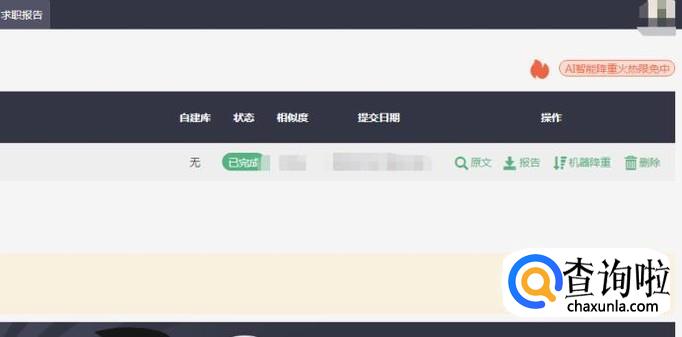 经过一段时间,检测完成,显示成“已完成”,点击后方查看论文即可。