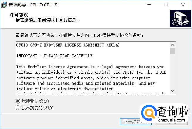 CPU-Z软件下载完毕之后,双击进入安装程序界面,完成该软件的安装,并运行该软件检测电脑硬件。