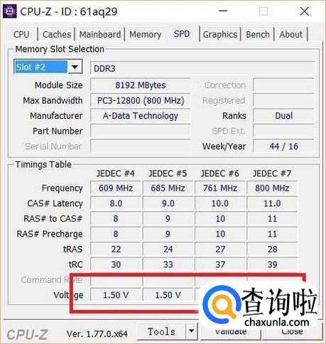 一般来说,针对DDR3内存条类型,是区分标压和低压版本的,标压版本标记为DDR3,低压版本标记为DDR3L。如果是标压版本,可以看到内存电压为1.5V。