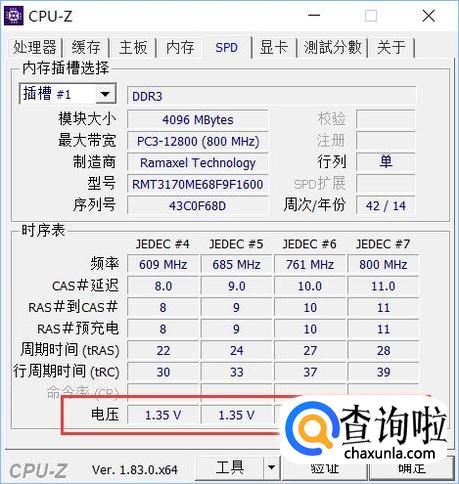 如果是低压版本的话,可以看到内存电压为1.35V。